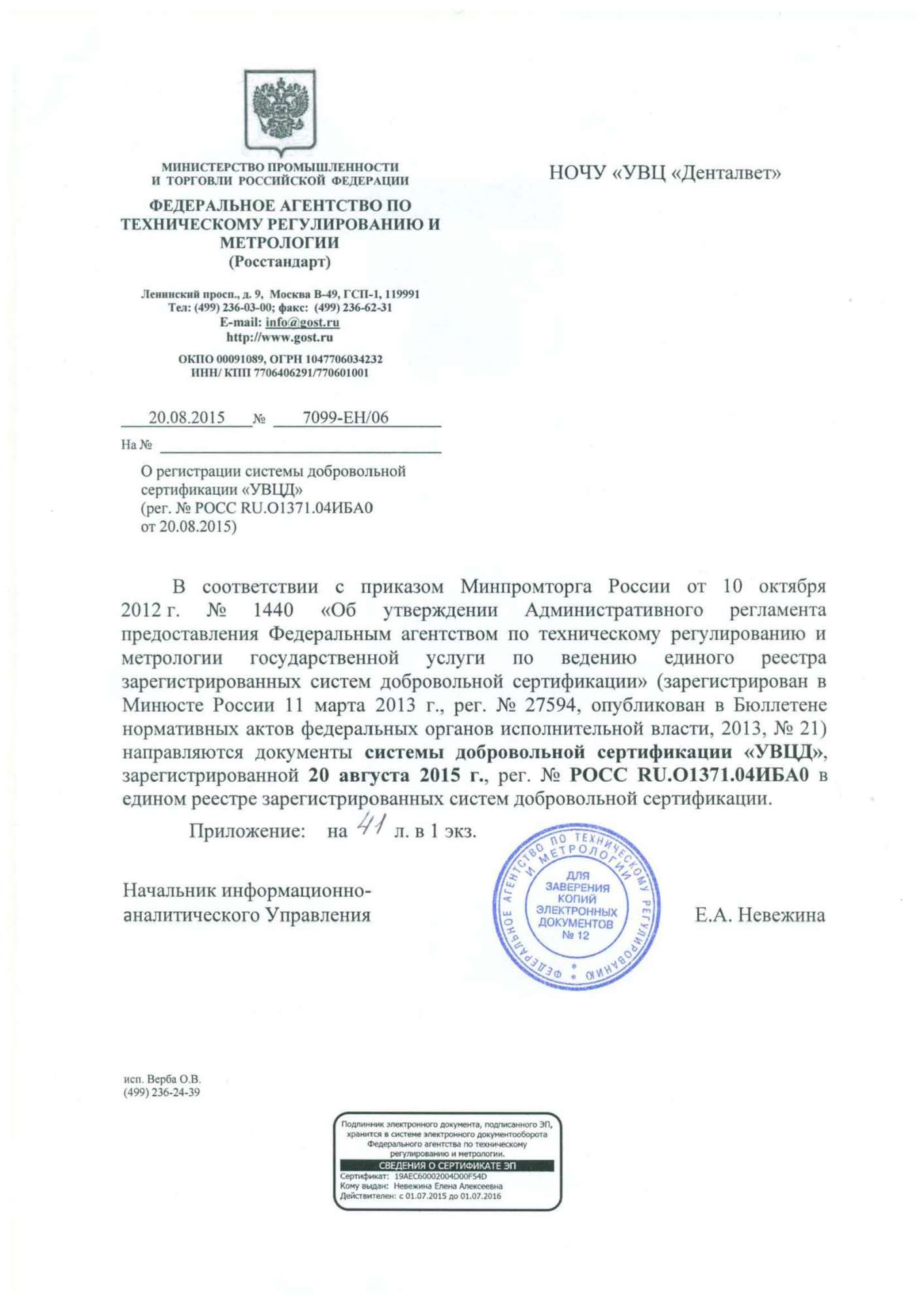 Регистрационный № РОСС RU.О1371.04ИБА0 от 20.08.2015 г.